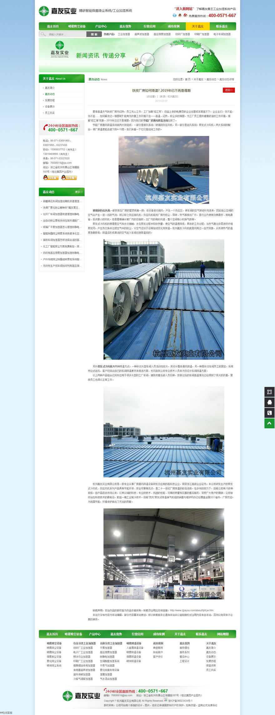 网站简介:夏季高温天气铁皮厂房内闷热,员工无心工作,工厂加剧“招工荒”,日益上涨的电费导致企业运营成本居高不下,企业主们,伤不起啊。如何解决这一难题呢?能有效改善工作环境不佳——高温、闷热、粉尘多的难题,为工厂员工提供健康舒适的工作环境,缓解“招工难”现象。2019年这已不是难题,因为我们的节能厂房降温系统出现了。